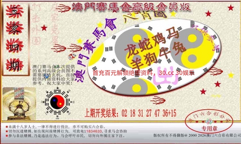 | 第303期⑥肖:鸡猴马狗虎兔 |